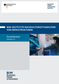 Das Praxisdokument beschreibt mögliche Herangehensweisen an eine modellbasierte Nachhaltigkeitsbewertung mithilfe von BIM-Modellen im Bundesfernstraßenbau. (Version 1.1, Stand Februar 2026)