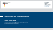 In der Plenums-Session am Vormittag stand das Thema „BIM im Regelprozess“ im Fokus. Der Mitschnitt umfasst das Grußwort von Bundesverkehrsminister Patrick Schnieder, den Impuls von Steffen Müller, Leiter der Unterabteilung Straßen- und Ingenieurbau im Bundesministerium für Verkehr, zum Übergang von BIM in den Regelprozess sowie die anschließende Plenumsdiskussion mit Vertreterinnen und Vertretern aus Bund, Ländern und aus der Wirtschaft.